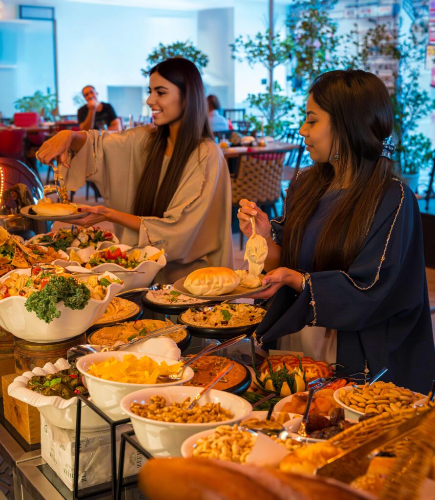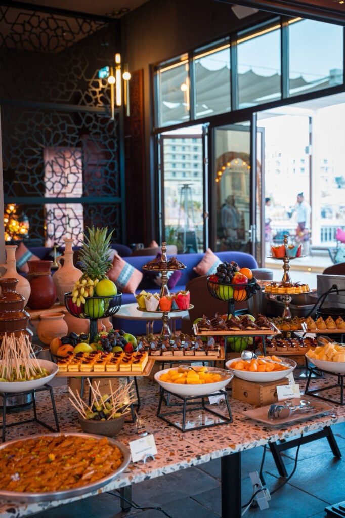 To conclude the experience, guests can indulge in a generous dessert spread featuring kunafa, umm ali, luqaimat, qatayef, ma’amoul, baklava with pistachio or walnuts, and gulab jamun, alongside an ice cream station offering vanilla, chocolate, pistachio, and strawberry cheesecake flavours.